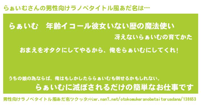らぁいむさんの男性向けラノベタイトル風あだ名をツクッター!