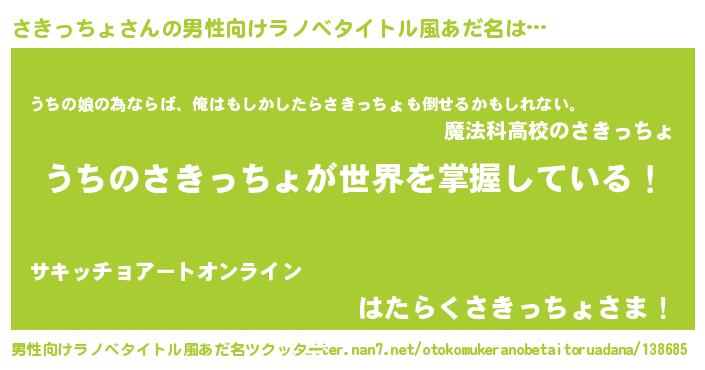| 胡散臭い通販商品みたいなあだ名 | 『運命の人と巡り会える高級そうな壺…その名も「さきっちょ」』 |