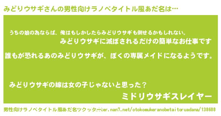 | 女子向けラノベタイトル風あだ名 | 『異世界でカフェみどりウサギを開店しました。』 |