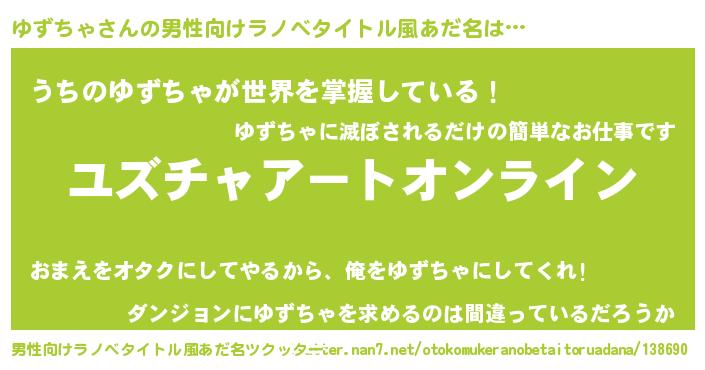 | 女子向けラノベタイトル風あだ名 | 『ゆずちゃ姫と円卓の騎士』 |