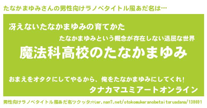 | 女子向けラノベタイトル風あだ名 | 『たなかまゆみなんてお断りですっ。』 |