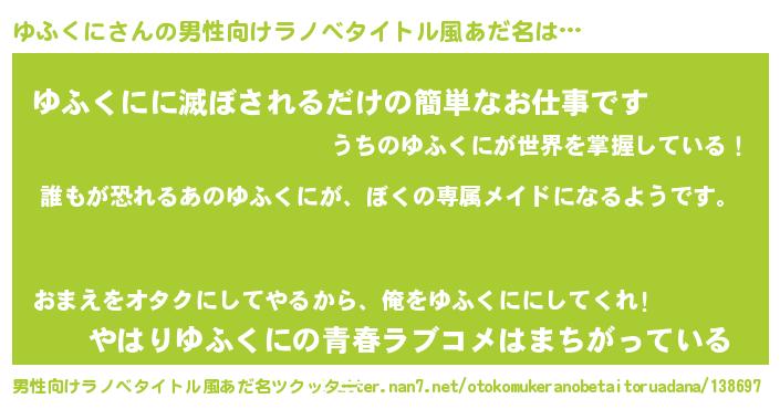 | 意味不明あだ名 | 『永久保存ゆふくに』『自称ゆふくに』 |
