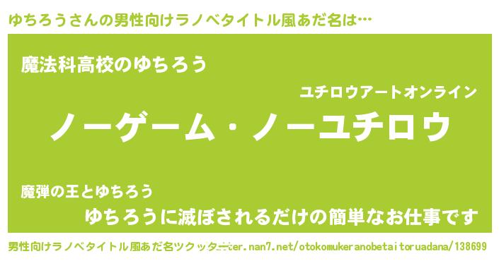 | 女子向けラノベタイトル風あだ名 | 『死神ゆちろうの再婚』 |