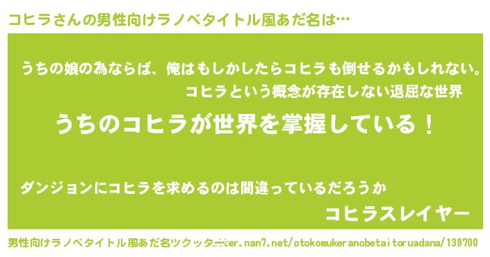 | 胡散臭い通販商品みたいなあだ名 | 『運命の人と巡り会える高級そうな壺…その名も「コヒラ」』 |