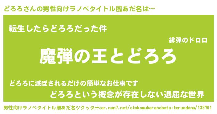 | 意味不明あだ名 | 『住所不定無職どろろ(98歳)』『自称どろろ』 |