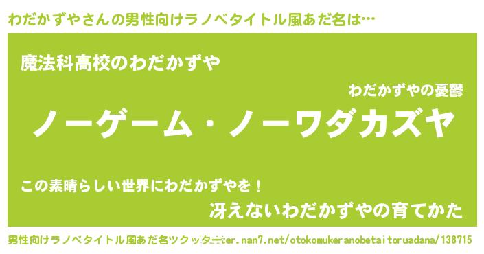 | 肩書あだ名 | 『わだかずや助教授』『わだかずや総統』 |
