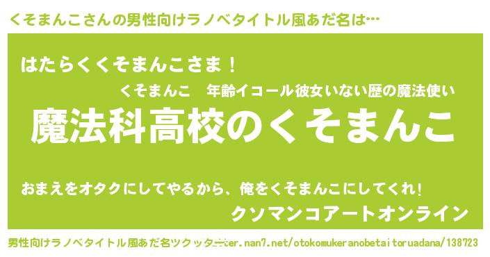 | 女子向けラノベタイトル風あだ名 | 『くそまんこアンティーク』 |