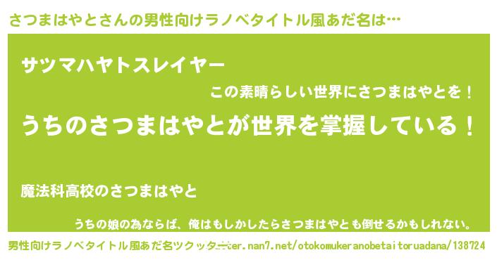 | 胡散臭い通販商品みたいなあだ名 | 『運命の人と巡り会える高級そうな壺…その名も「さつまはやと」』 |