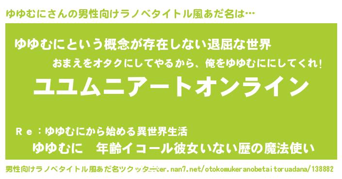 | 胡散臭い通販商品みたいなあだ名 | 『億万長者になれるブレスレット…その名も「ゆゆむに」』 |