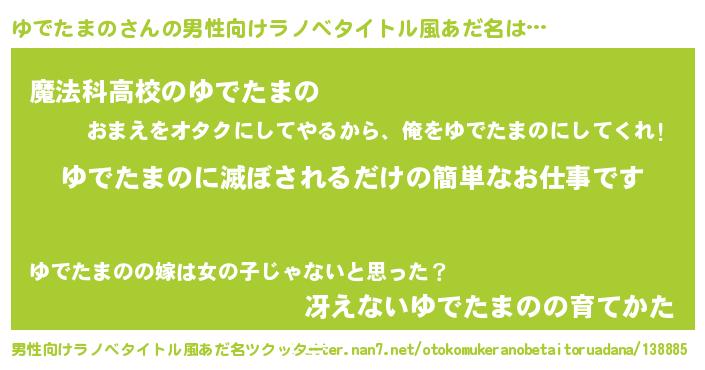 | ヘコむあだ名 | 『ゆでっ子』『ゆでたまの(震え声)』 |