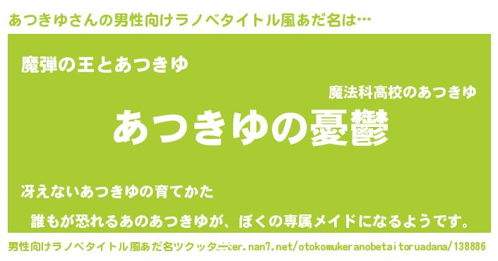 | ヘコむあだ名 | 『あつにゅー』『あつきゆ(笑)』 |