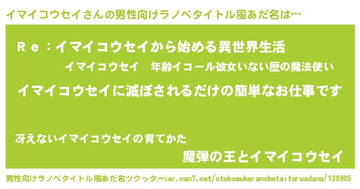 | 意味不明あだ名 | 『自称イマイコウセイ』 |