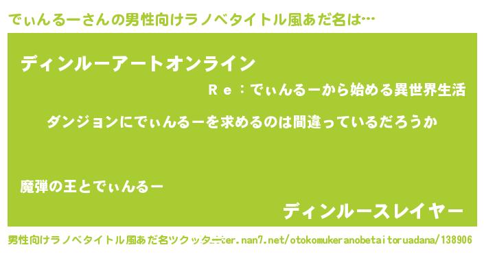 | 女子向けラノベタイトル風あだ名 | 『でぃんるーは平凡を望む』 |