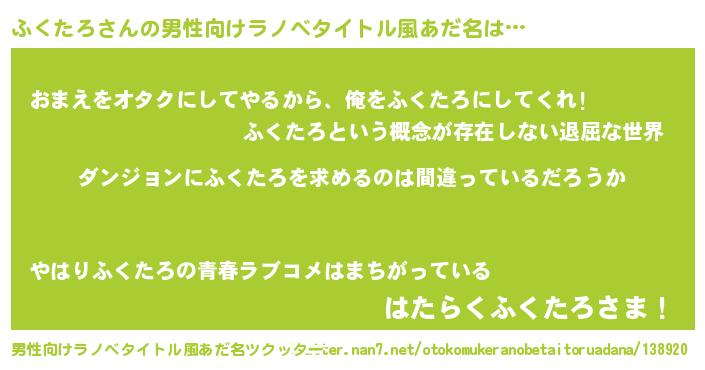 | 胡散臭い通販商品みたいなあだ名 | 『信頼と実績のネックレス…その名も「ふくたろ」』 |