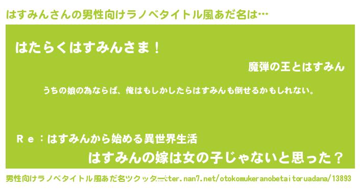 | ヒーロー風カッコイイあだ名 | 『ウルトラはすみんマン』『暗黒騎士ハス』 |