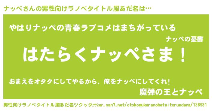 | 女子向けラノベタイトル風あだ名 | 『首の姫と首なしナッペ』 |