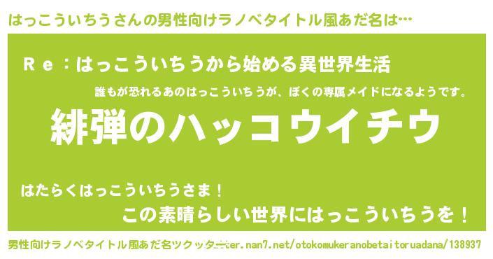 | ヒーロー風カッコイイあだ名 | 『超時空戦士ハッコウイチウ』 |