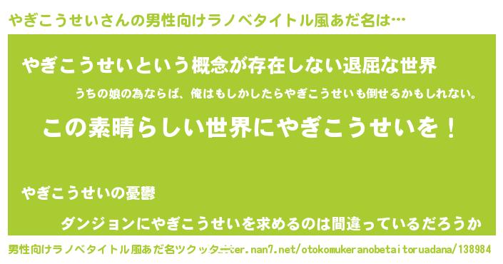 | 欧米人風あだ名 | 『ダレノガレやぎこうせい』 |