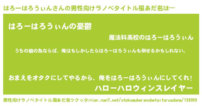 | 女子向けラノベタイトル風あだ名 | 『はろーはろうぃんの婚約者』 |