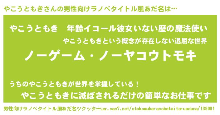 | ヒーロー風カッコイイあだ名 | 『慈愛の使者やこうともき』 |