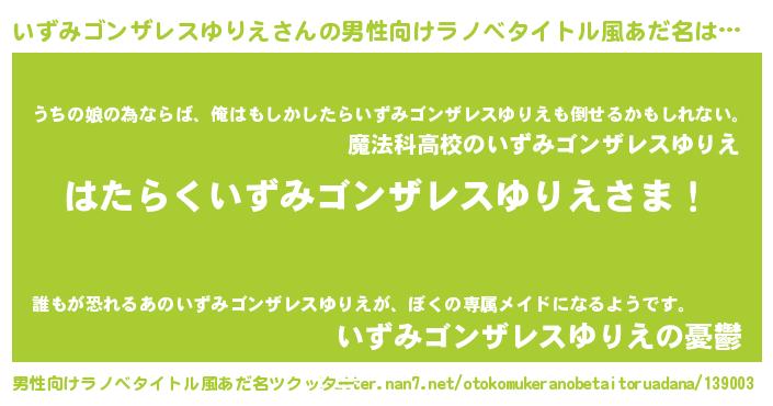 | ファンタジー風あだ名 | 『エターナルイズミゴンザレスユリエー』 |