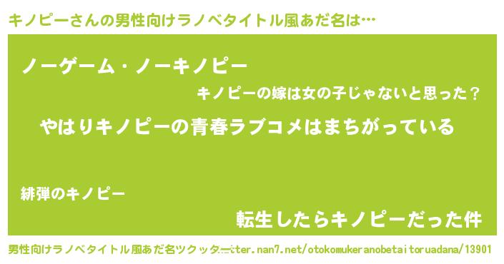 | 女子向けラノベタイトル風あだ名 | 『キノピーの雑貨屋さん』 |