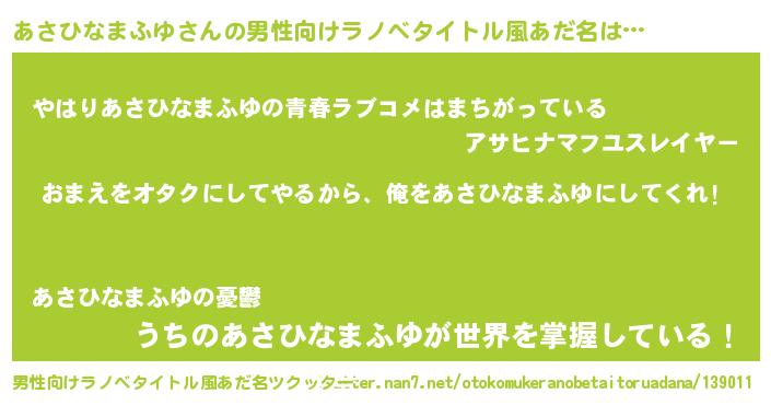 | 意味不明あだ名 | 『眠気覚ましガムあさひなまふゆ味』 |