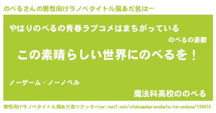 | ヒーロー風カッコイイあだ名 | 『仮面ノベダー』『ウルトラのべるマン』 |