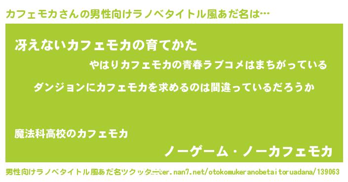 | 胡散臭い通販商品みたいなあだ名 | 『伝統あるサプリメント…その名も「カフェモカ」』 |