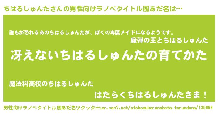 | 胡散臭い通販商品みたいなあだ名 | 『来世でも幸せになれる健康食品…その名も「ちはるしゅんた」』 |