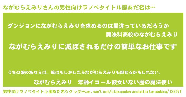 | 伝説のあだ名 | 『覚醒した遊び人ながむらえみり』 |