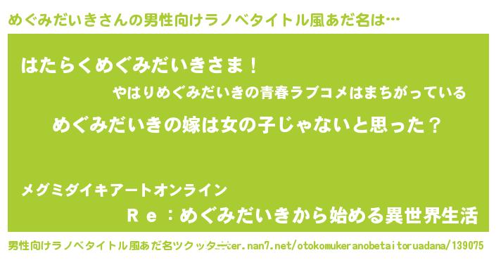 | 意味不明あだ名 | 『とにかく怪しいめぐみだいき』 |