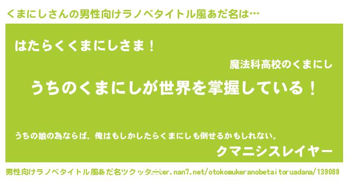 | 意味不明あだ名 | 『ニラ科くまにし属』『自称くまにし』 |