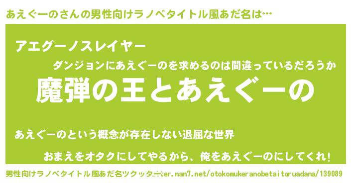 | 意味不明あだ名 | 『住所不定無職あえぐーの(11歳)』 |