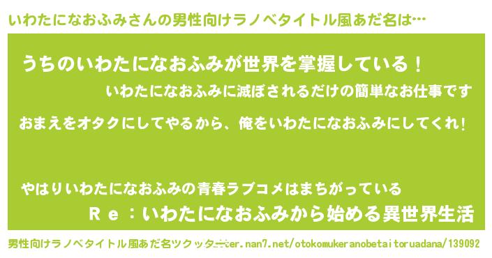 | 女子向けラノベタイトル風あだ名 | 『いわたになおふみ夫妻のなれそめ』 |