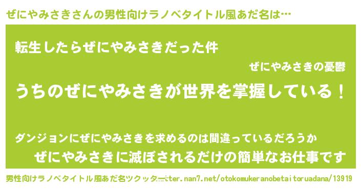 | 胡散臭い通販商品みたいなあだ名 | 『億万長者になれる水晶球…その名も「ぜにやみさき」』 |