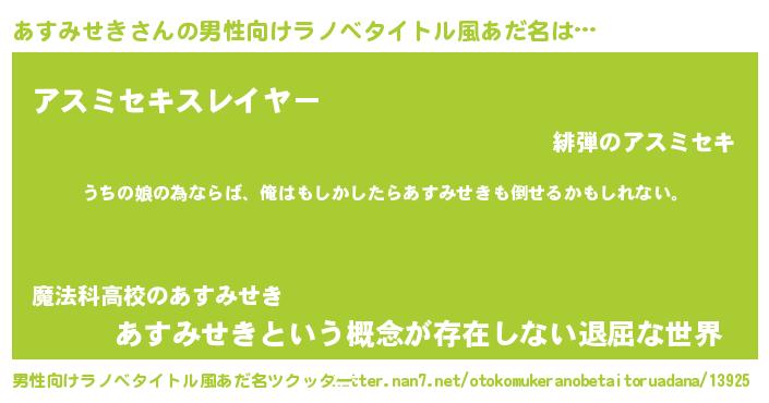 | 肩書あだ名 | 『あすみせき大統領』『あすみせき大尉』 |