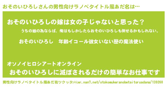 | 女子向けラノベタイトル風あだ名 | 『おそのいひろしの玉の輿計画!』 |