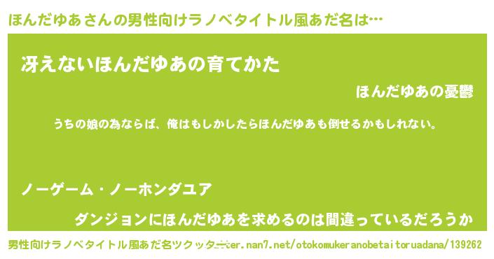 ほんだゆあさんの男性向けラノベタイトル風あだ名をツクッター!