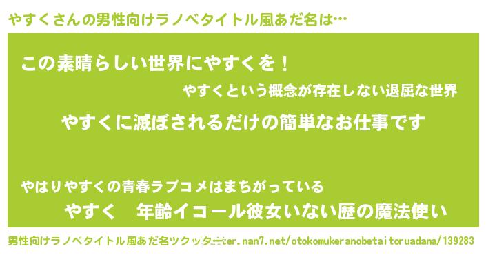 | 胡散臭い通販商品みたいなあだ名 | 『あなたにだけ特別に提供する世界で10本だけ現存している希少なブランデー…その名も「やすく」』 |