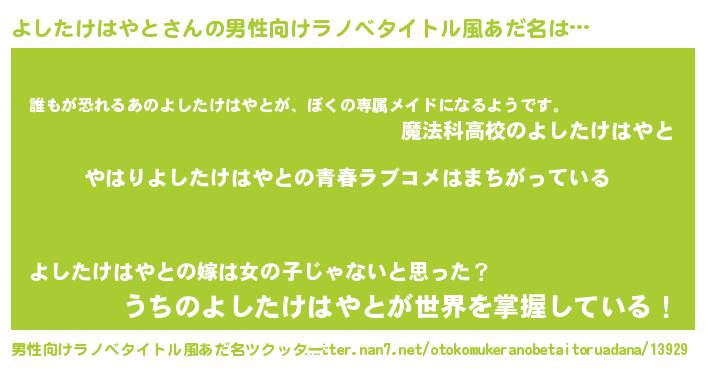 | ファンタジー風あだ名 | 『エターナルヨシタケハヤトー』 |
