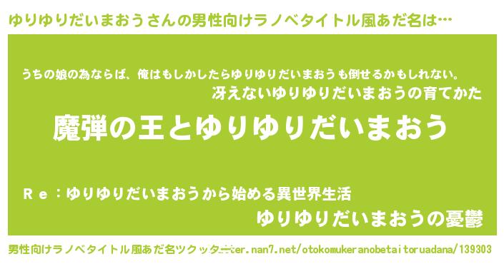 | 意味不明あだ名 | 『住所不定無職ゆりゆりだいまおう(68歳)』 |