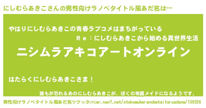 | 胡散臭い通販商品みたいなあだ名 | 『モテモテ間違いなしブレスレット…その名も「にしむらあきこ」』 |