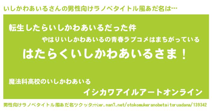 | 胡散臭い通販商品みたいなあだ名 | 『必ず成功するブレスレット…その名も「いしかわあいる」』 |