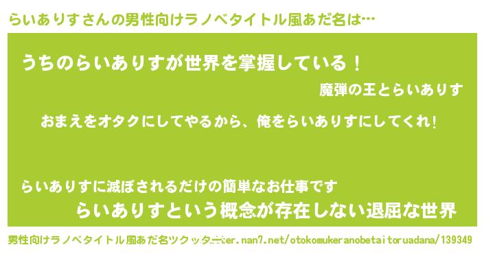 | ヘコむあだ名 | 『らいありす(苦笑)』『らいお』 |