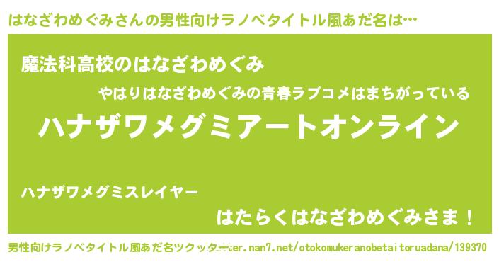 | ヒーロー風カッコイイあだ名 | 『スーパーハナザワメグミ』 |