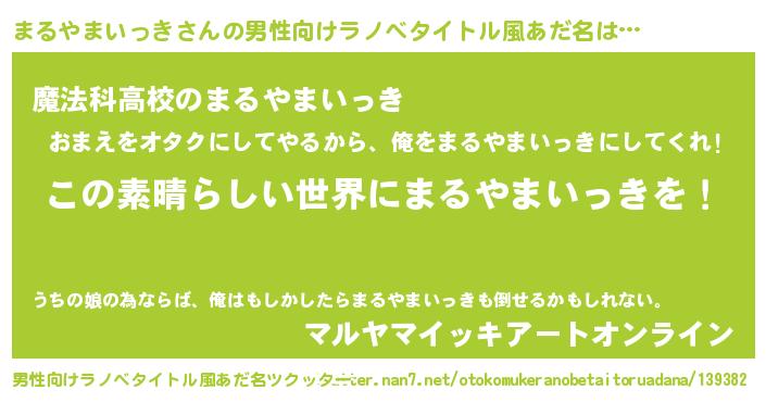 | 伝説のあだ名 | 『不死鳥の竜騎士まるやまいっき』 |