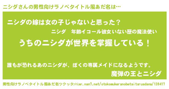 | 女子向けラノベタイトル風あだ名 | 『男装ニシダの憂鬱な任務』 |