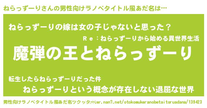 | 女子向けラノベタイトル風あだ名 | 『乙女ゲームの破滅フラグしかない悪役ねらっずーりに転生してしまった…』 |