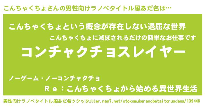 | 胡散臭い通販商品みたいなあだ名 | 『絶対に幸福をもたらす招き猫…その名も「こんちゃくちょ」』 |